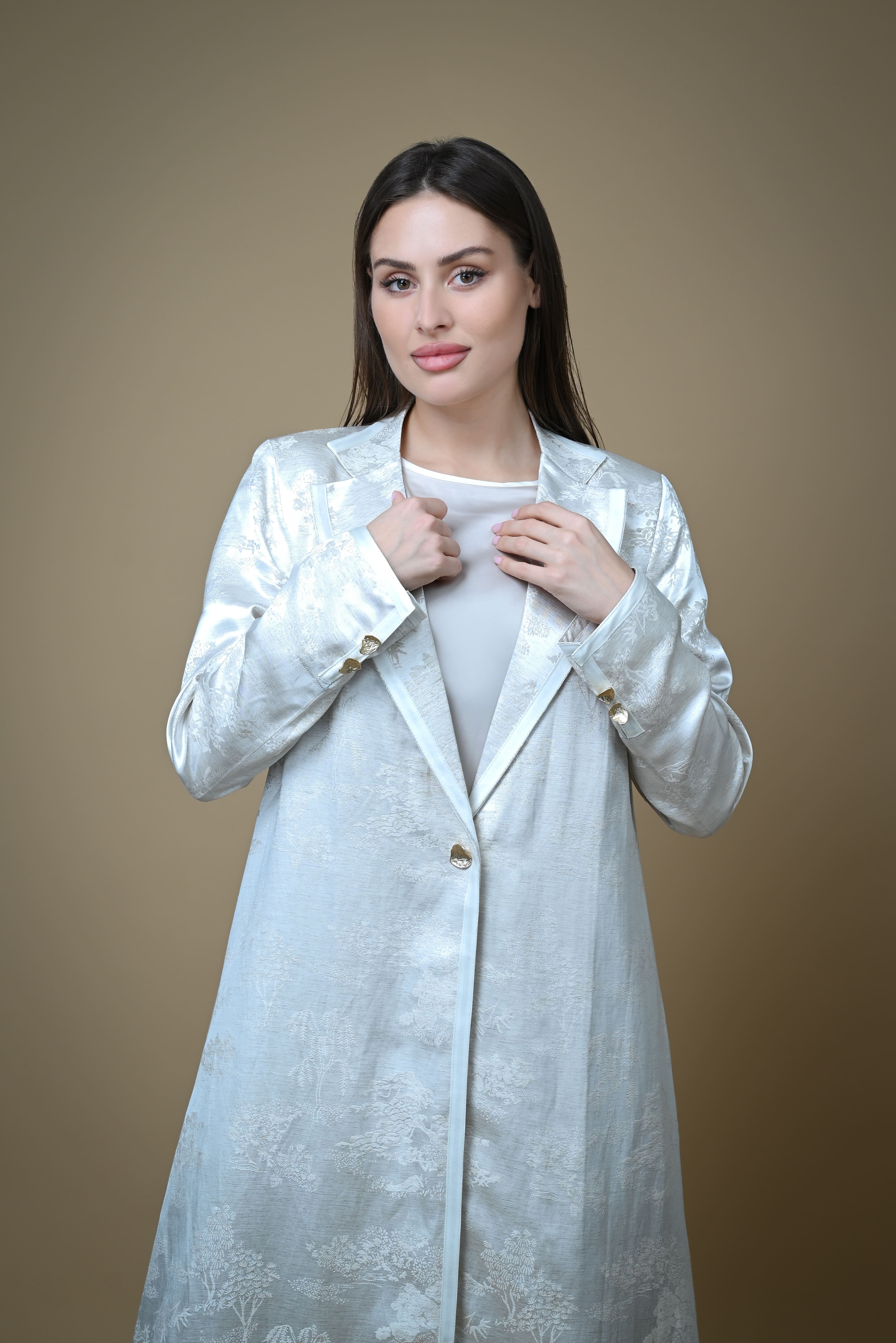 عباية بليزر كاجوال مصنوعة من خامة الحرير المشجر الفاخر لتمنحك أنوثة وأناقة لا مثيل لها.